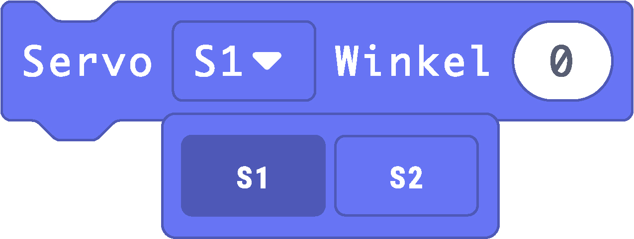 Der Schieber bietet die Möglichkeit, den Ultraschallsensor über einen Servomotor in verschiedene Richtungen (180°) zu rotieren. Auf diese Weise können Entfernungen zu umliegenden Objekten gemessen werden. Die Programmierung des Servomotors erfolgt über den Servo-Block.