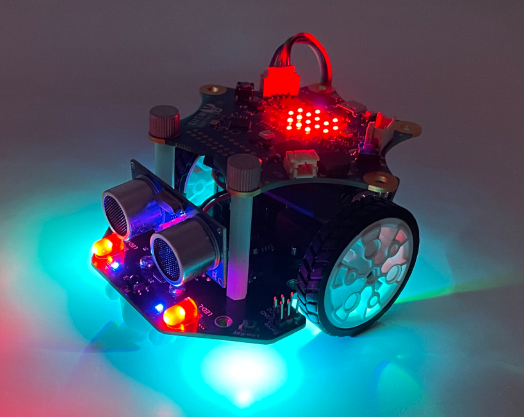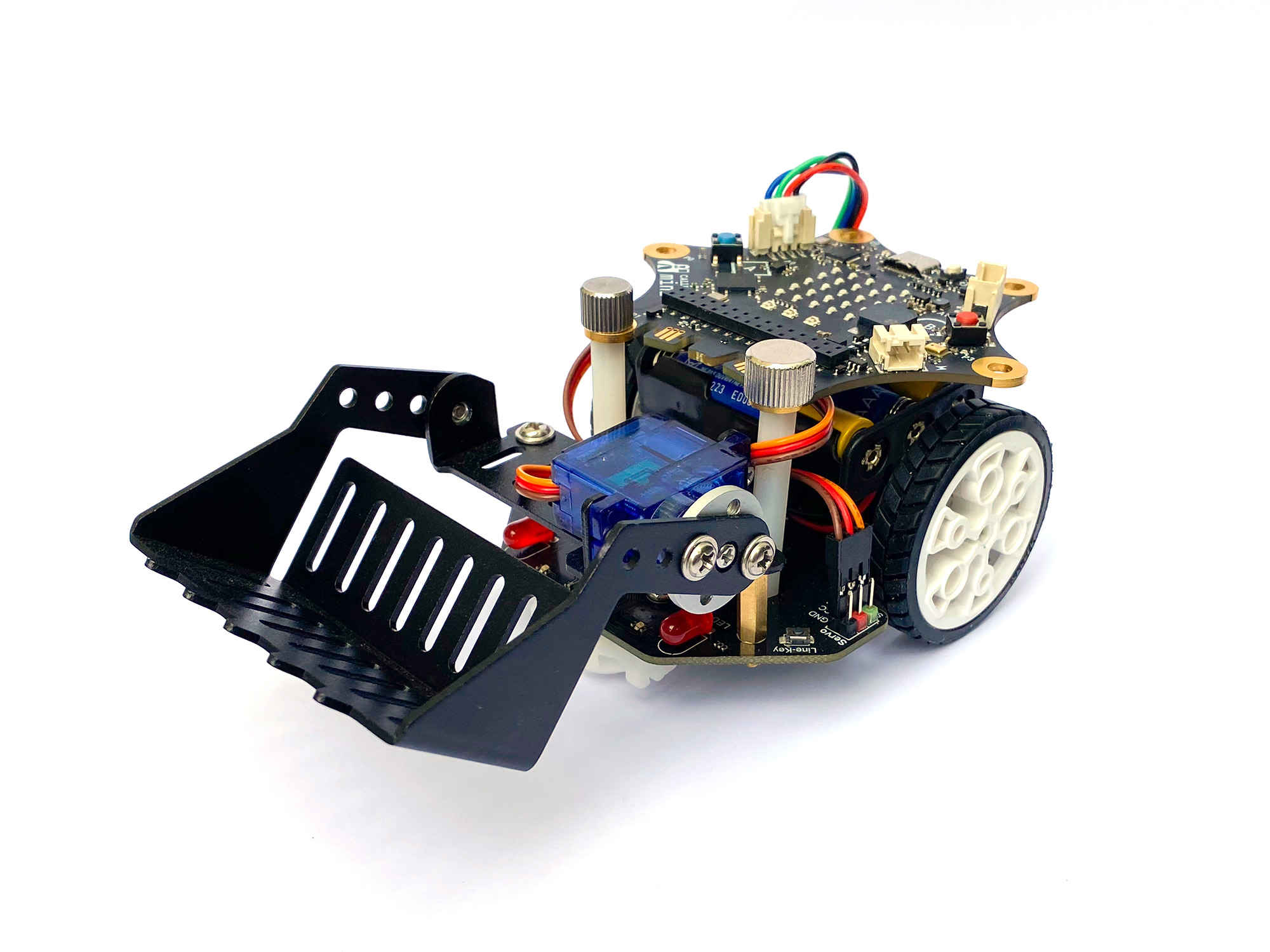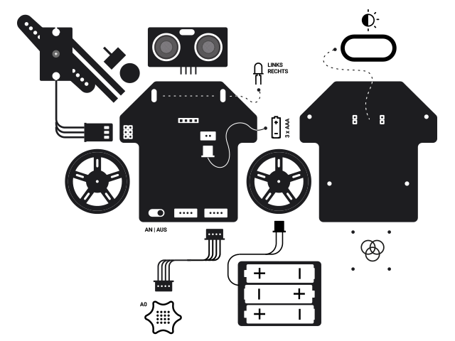 Das MotionKit 2 mit zwei starken Motoren, integriertem Linienfolger, Infrarot-Sensor und Ultraschallsensor ist in 5 Minuten montiert, sodass direkt programmiert werden kann. Mit Hilfe des neuen MotionKit setzt du deinen Calliope mini in Bewegung. Lass ihn auf einer Linie fahren, mit einem weiteren Calliope mini fernsteuern oder verwandle ihn in einen Malroboter. Der Phantasie sind keine Grenzen gesetzt. 🤖