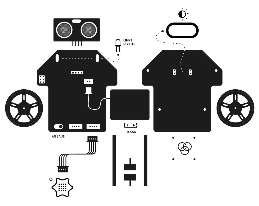 Mit Hilfe des Ultraschallsensors können Hindernisse erkannt werden. Kannst du ihnen ausweichen? 👀
