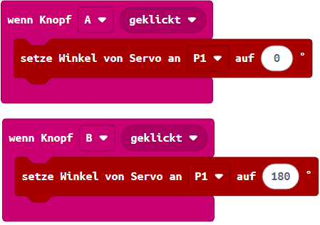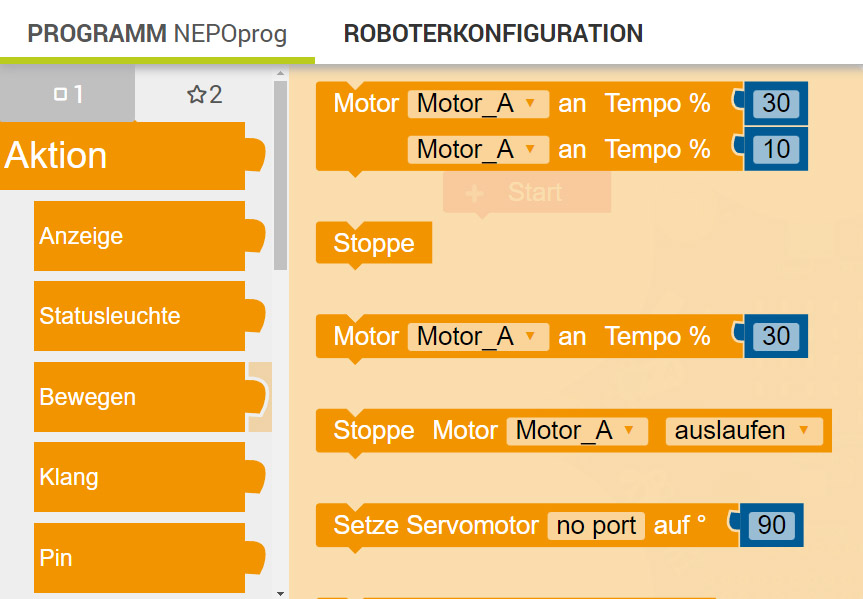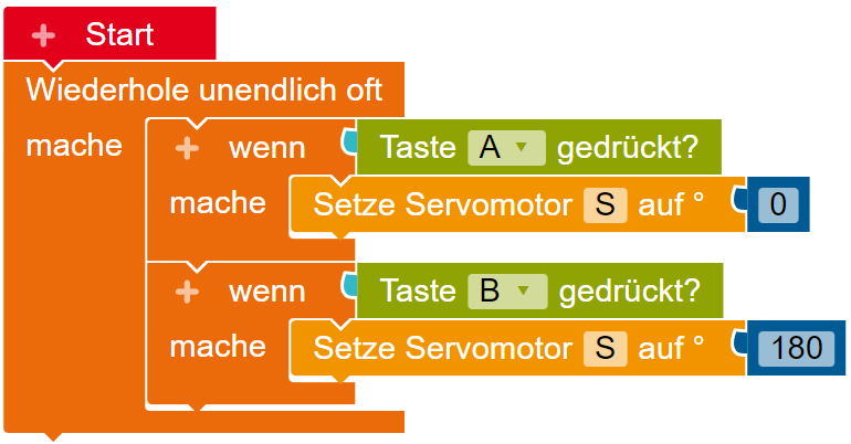 Der Block um den Servo in eine bestimmte Position zu bewegen befindet sich im Editor bei den fortgeschrittenen Blöcken (☆2) unter Bewegen