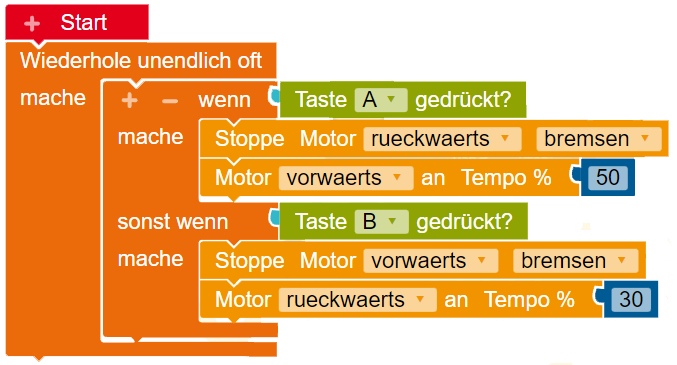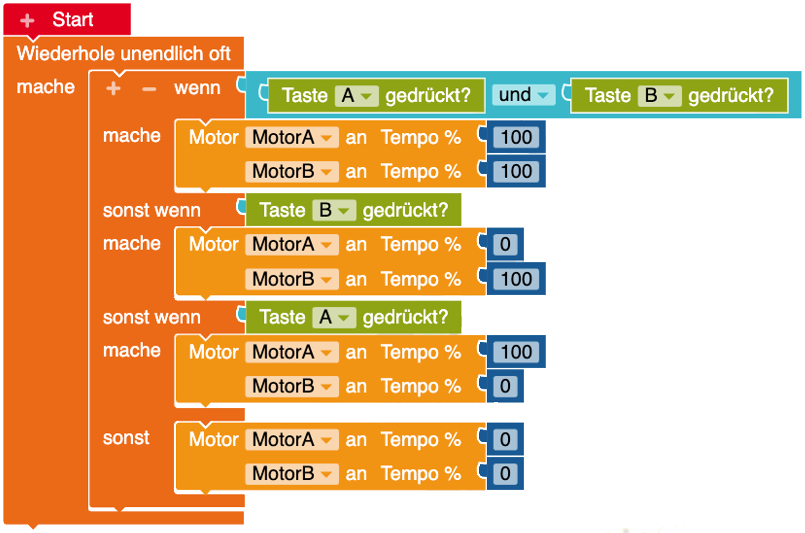 Um zwei Motoren zu steuern, wird der Block verwendet, indem Motor A und B, sowie A + B eingestellt werden können.