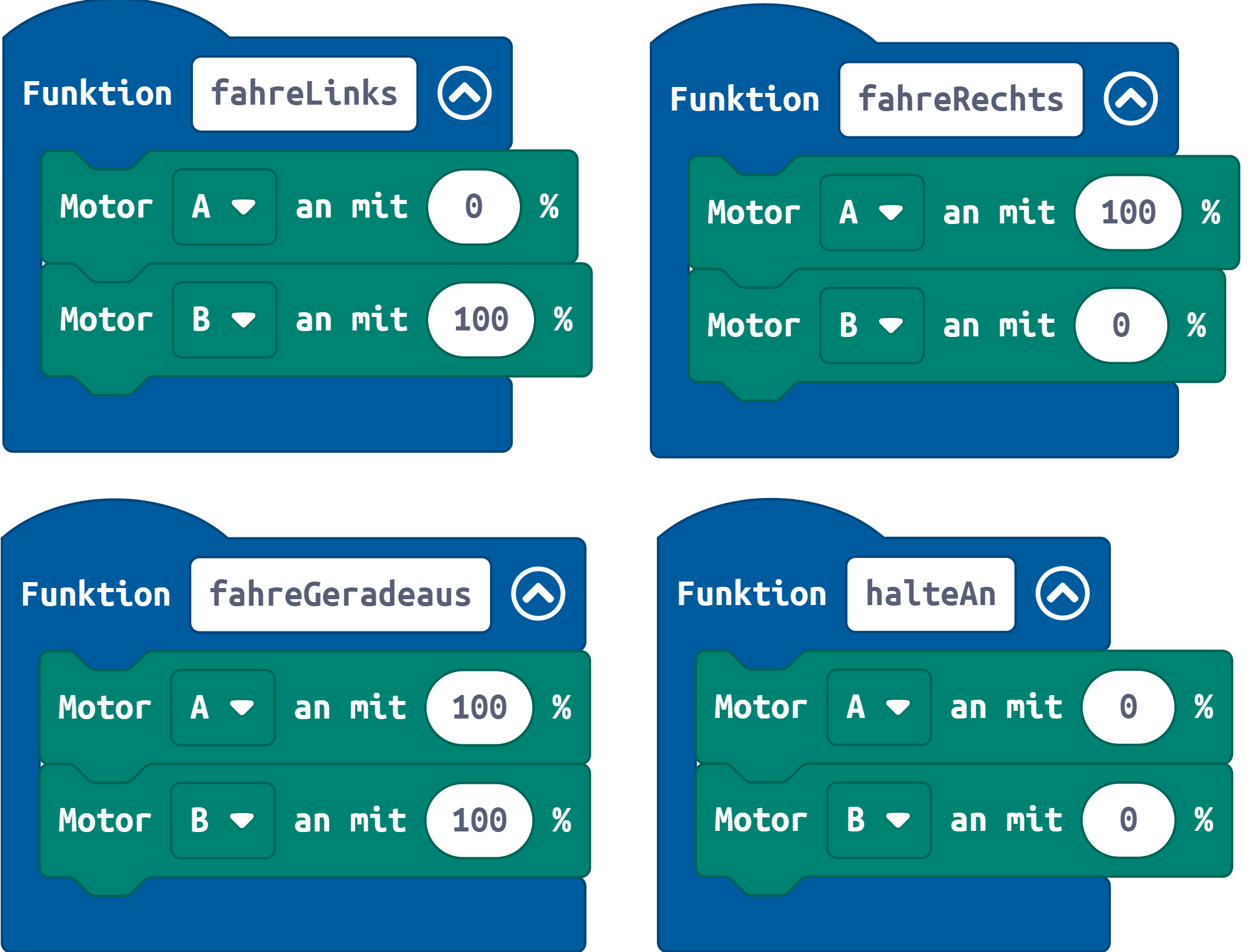 Die Fahrmanöver können wie hier im Beispiel in Funktionen definiert und abgerufen werden