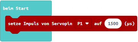Über die Pulslänge des PWM-Signals wird die Winkelstellung der Achse ermittelt. Die Frequenz bleibt dabei einheitlich bei 20 ms (50 Hz). der kürzeste Impuls, stellt den Servo auf 0 Grad und der längste auf die maximale Stellung von 180°. Alle anderen Positionen werden entsprechend dazwischen verteilt. Servos haben allerdings verschiedene Pulslängen. Diese kann in MakeCode angepasst und konfiguriert werden. Die meisten Servos haben eine Pulslänge zwischen 1 und 2 Millisekunden. Die neutrale Stellung zwischen den Werten wird im Editor festgelegt.