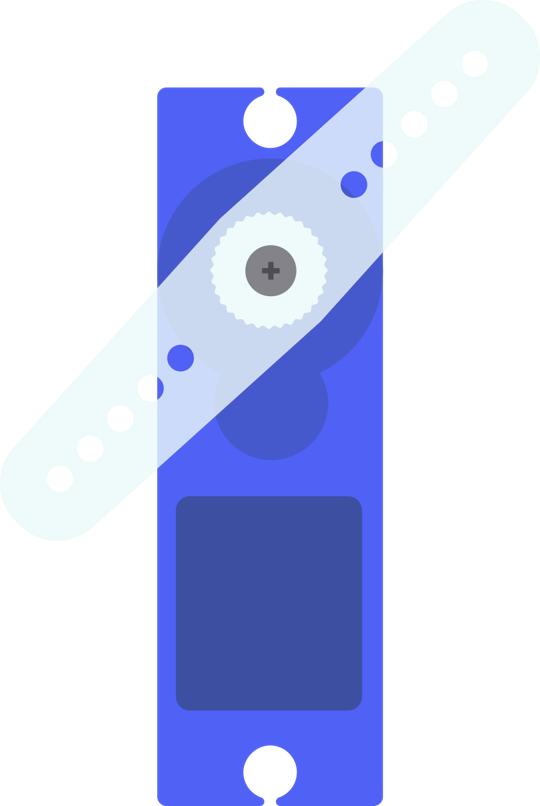 Ein Servomotor ist ein spezieller elektrischer Motor, der über die Winkelposition gesteuert wird. Ein zusätzlicher integrierter Sensor (Potentiometer) gibt die Informationen über die Position zurück. Über ein PWM-Signal wird anhand der Pulslänge die Winkelstellung übermittelt.
