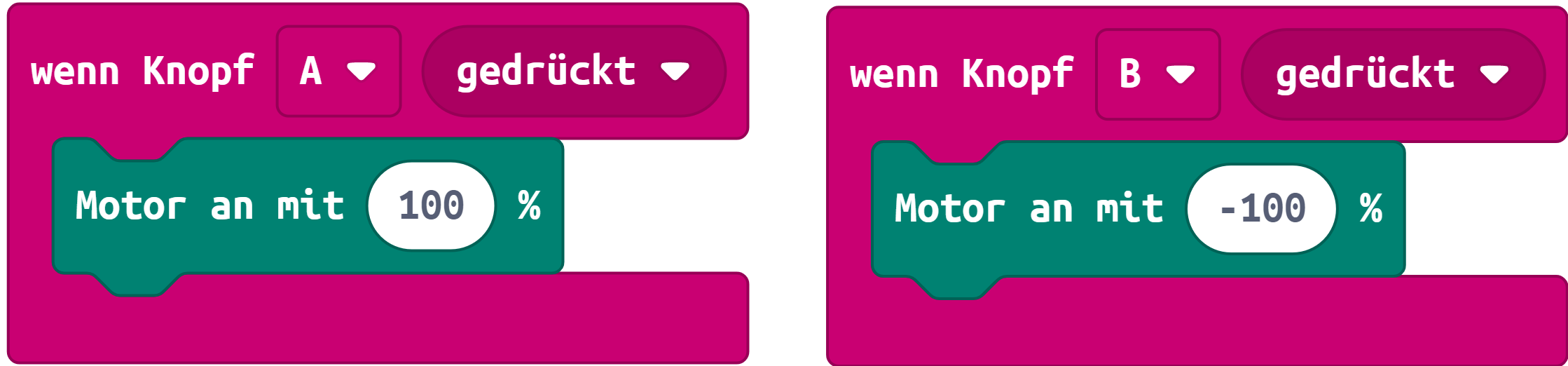 Der Motor wird vorwärts bewegt, indem die Geschwindigkeit in der Programmierung auf eine positive Prozentzahl gesetzt wird. Um den Motor rückwärts zu bewegen werden negative Prozent eingestellt.