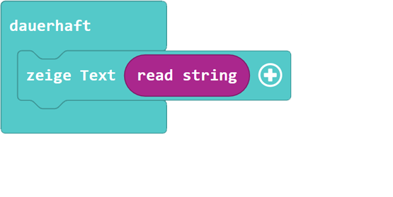 - read string: Liest den Buchstaben der gedrückten Taste aus und gibt diesen als Zeichen zurück.