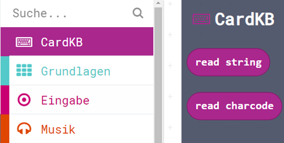 Die Kartentastatur "CardKB" ist eine QWERTY-Tastatur, die über den Grove-Anschluss A0 an den Calliope mini angeschlossen werden kann und diesen mit bis zu 50 Tasten erweitert. Mit der Tastatur können z.B. Texte geschrieben und auf der LED-Matrix angezeigt werden oder diese kann als Eingabeerweiterung für interaktive Spiele und Anwendungen verwendet werden.
