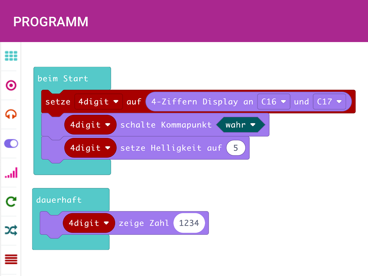 The 4-digit display shows 4 digits. Only natural numbers are displayed (0-9999). There is also the option to display a colon in the middle.