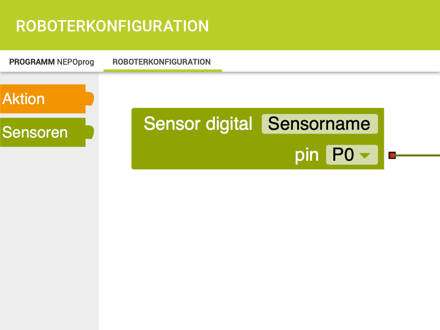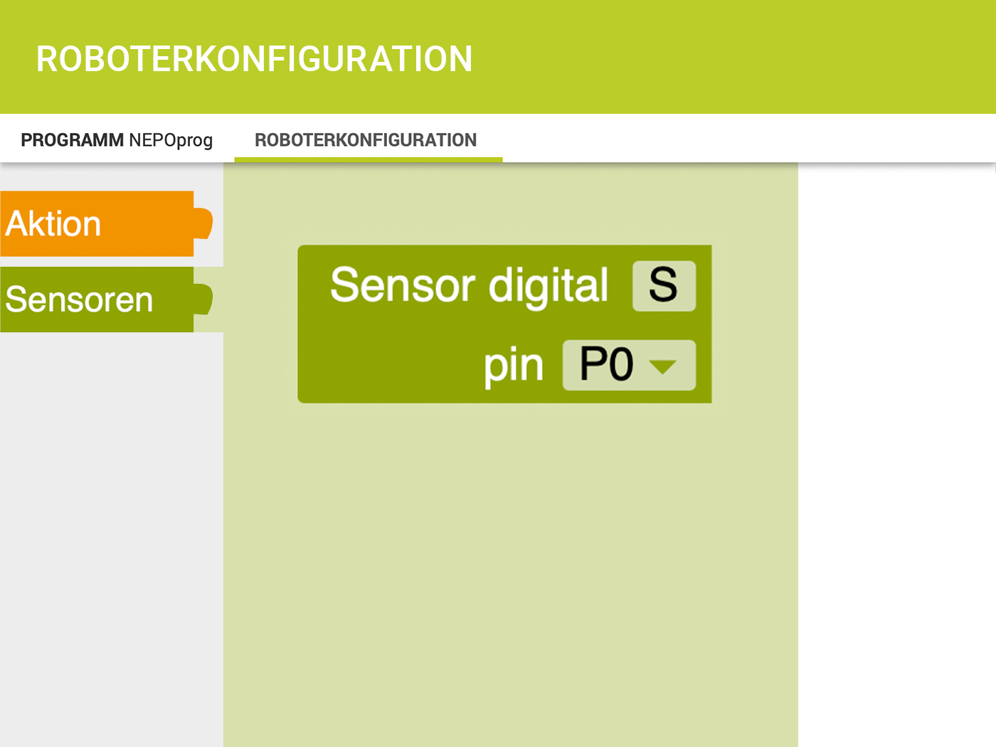 In order to operate further external sensors and actuators, these must first be configured in the Open Roberta Lab.