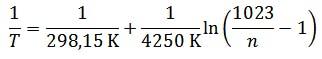 If one considers the graph of the corresponding function equation T(n), the range between n = 270 and n = 699 can be regarded as linear. This range supplies the temperatures T(270) = 5 °C and T(699) = 42 °C.