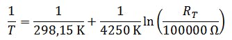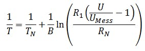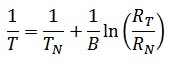 B is a size dependent on the component. B is a component-dependent quantity, which can be taken from the data sheet with B = 4250 K. Thus, the analog quantity temperature can be mapped to the analog quantity electrical resistance.