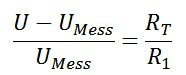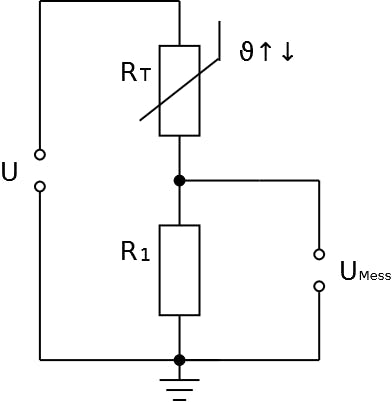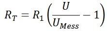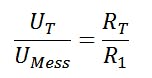 Rt can be mapped to UMess because there is a voltage divider available for which the following applies: The ratio of the two resistance values corresponds to the ratio of the partial voltages across the resistors.
