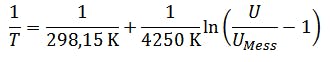 If this equation is now used in the equation for the temperature, you get a mapping of the analog temperature to the analog voltage UMess: