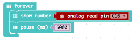 If the Grove Temperature Sensor V1.2 is connected to the right (!) grove connector of the Calliope mini, the measured values of the sensor can be shown in the display with the help of the following programs.