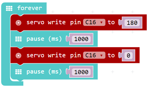 The servos are controlled via pin C16 on the MotionKit Servo Board. The control code could look like this: