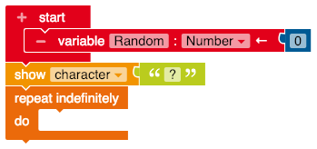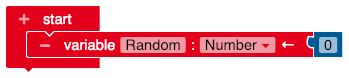 First, you create a variable. Click on the + symbol in the Start block. Then name the variable with random.