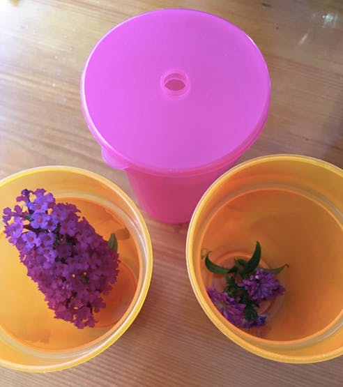 But we took the two "most smelling" flowers and put them into cups for a few minutes, which have a lid with a straw opening: just right for the sensor.
