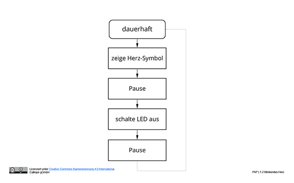 In dieser Einheit wird auf dem Calliope mini ein animierter Herzschlag erstellt. Nutze dafür die Dauerhaft-Funktion, Sequenz (Symbol, Animation) und die LED-Matrix.