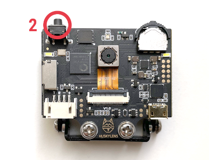 Im ersten Schritt werden bestimmte Farben gemerkt und identifiziert. Drücke dazu auf das Rädchen (1) an der HuskyLens und drehe es zur Seite, bis der Algorithmus Color Recognition auftaucht. Drücke das Rädchen (1) erneut, um die Farberkennung auszuwählen.