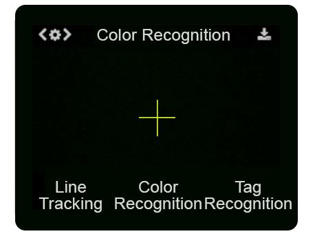 1. Im ersten Schritt werden bestimmte Farben gemerkt und identifiziert. Drücke dazu auf das Rädchen (1) an der HuskyLens und drehe es zur Seite, bis der Algorithmus Color Recognition auftaucht. Drücke das Rädchen (1) erneut, um die Farberkennung auszuwählen.