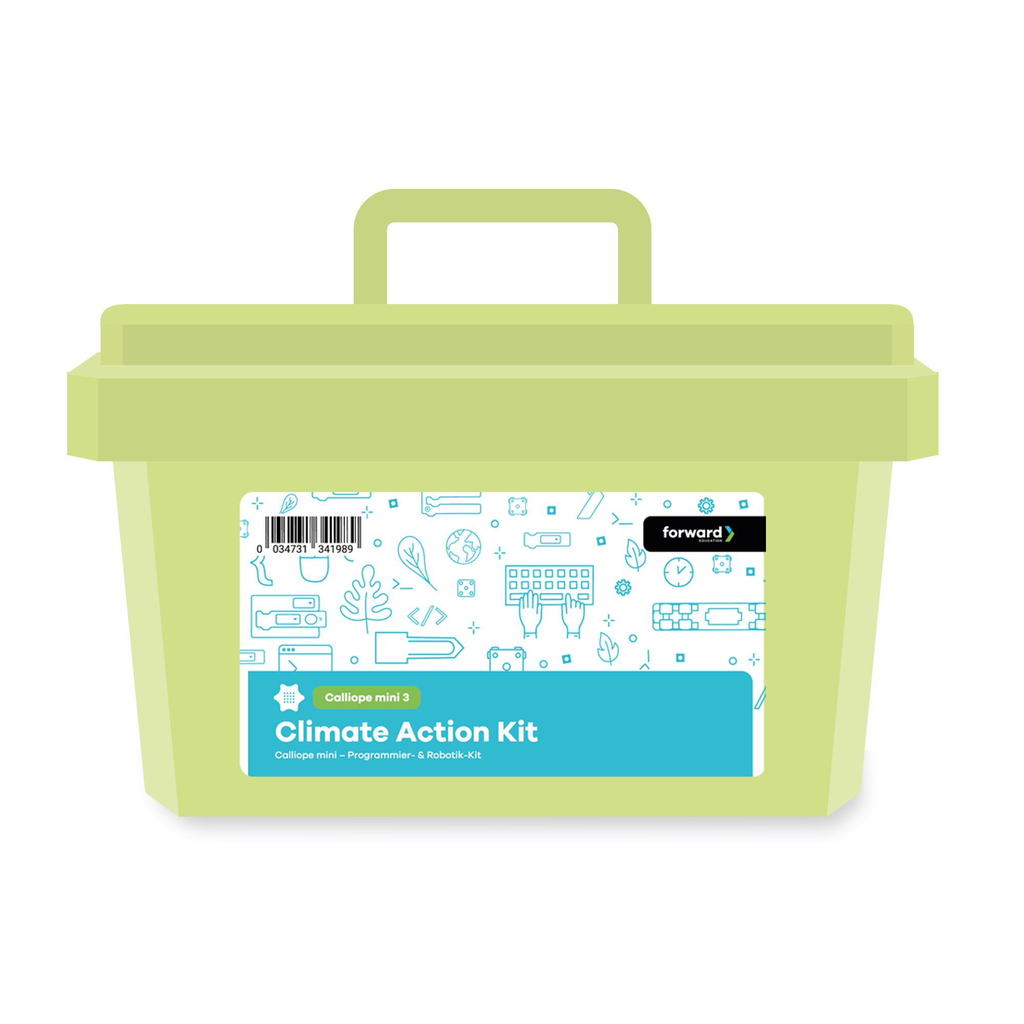 Das Climate Action Kit umfasst verschiedene Sensoren und Aktoren sowie eigene Klemmbausteine und eignet sich ideal für die Entwicklung funktionsfähiger Prototypen. Der Calliope mini wird auf eine Erweiterungsplatine mit integriertem Akku gesteckt und steuert mithilfe der passenden Programmierung alle Komponenten.