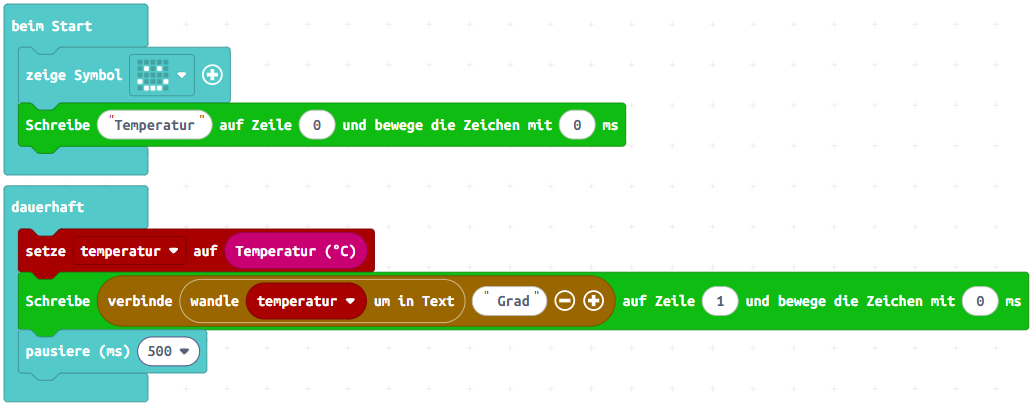 Anschließend können Text und Zahlen auf zwei verschiedenen Zeilen auf dem LCD-Display angezeigt werden: