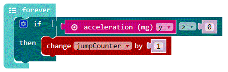 Su programa compara ahora el valor de los Calliope mini mide cuando saltas con el valor cuando no saltas.