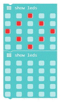 - Construye un patrón parpadeante usando el bloque "mostrar leds" de lo básico: