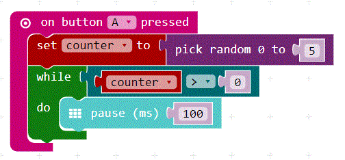 Necesitas un número al azar para no saber cuando el Calliope mini empezará a sonar.