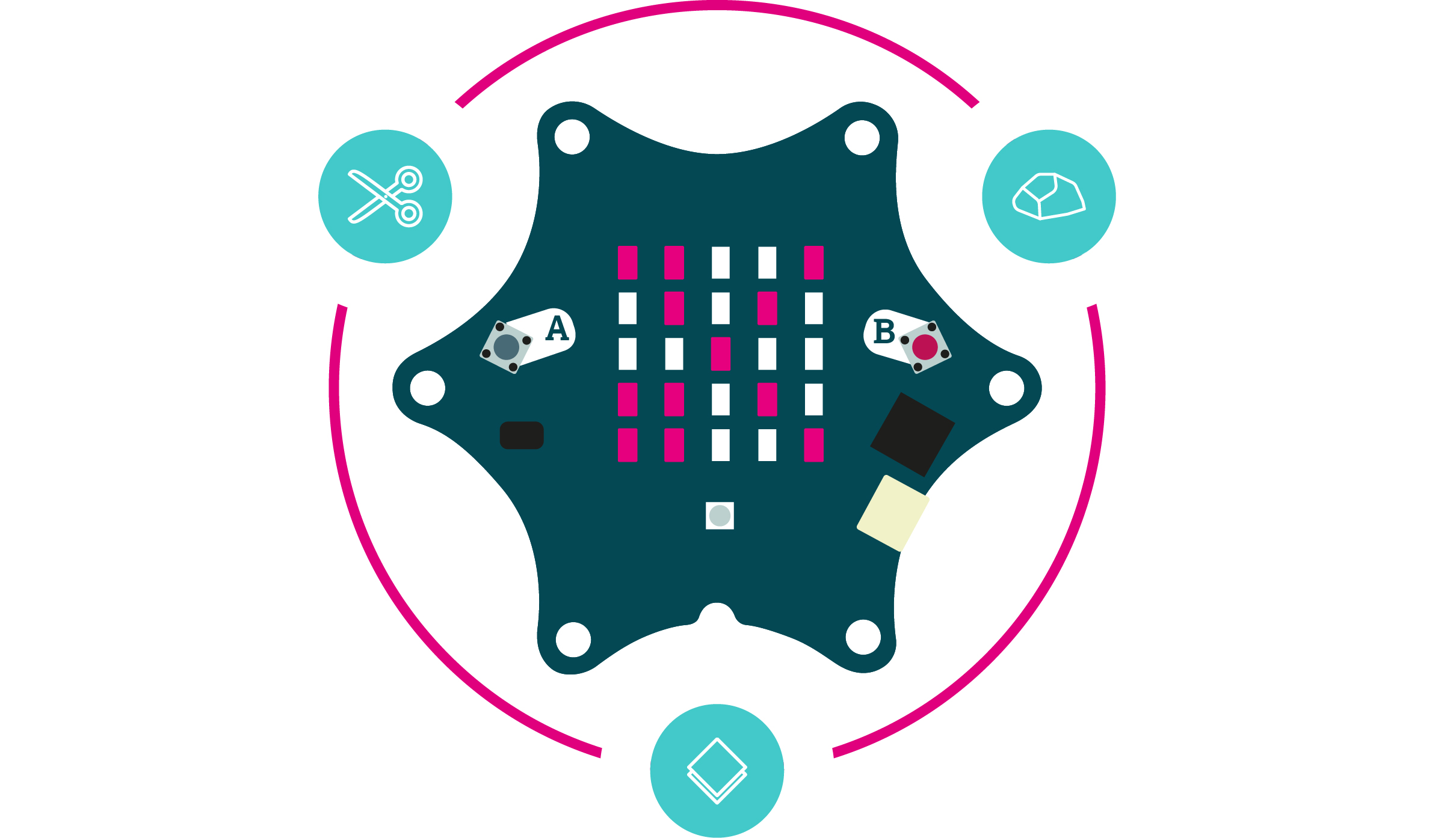 Hast du schon mal ein eigenes Spiel programmiert? Mit dem Calliope mini kannst du ein eigenes digitales Schere-Stein-Papier-Spiel coden und deine Freunde und Freundinnen herausfordern.