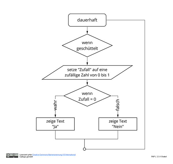 In dieser Einheit verwandelst du den Calliope mini in ein kleines Orakel. Schüttle deinen Calliope mini und bekomme eine Antwort auf deine Fragen. Auf dem Bildschirm erscheint entweder ein „JA” oder ein „NEIN”.
