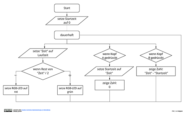 - Auf Taste B soll die abgelaufene Zeit angezeigt werden.
