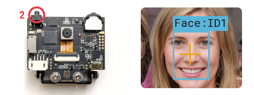 Im ersten Schritt wird die HuskyLens angelernt, damit sie später unterschiedliche Gesichter erkennen kann. Mit dem ausgewählten Algorithmus, der in der HuskyLens integriert ist, werden eingelesene Gesichter verarbeitet und die Gesichtserkennung trainiert.
