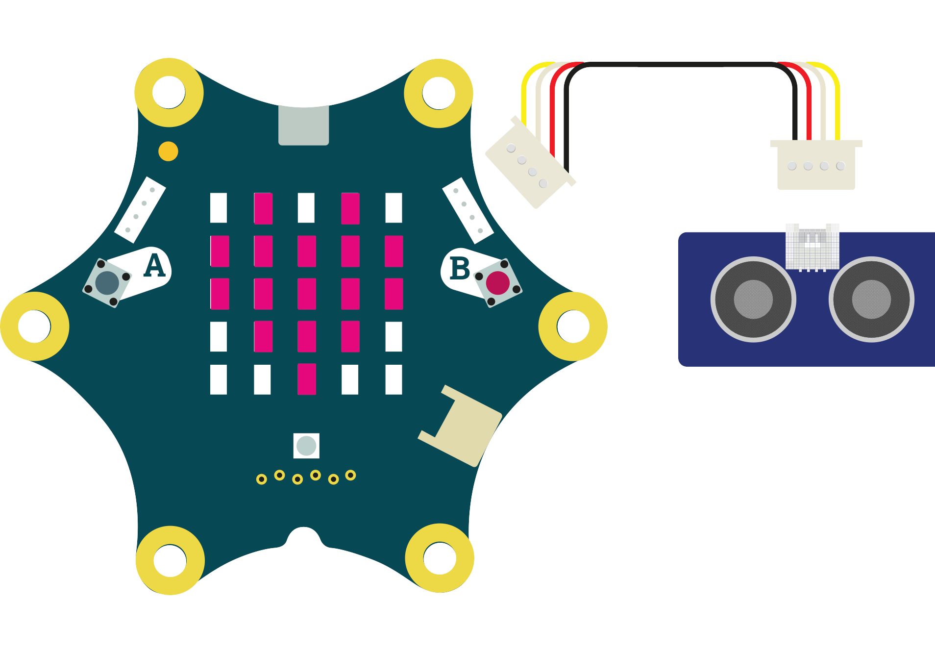Der Grove-Ultraschallsensor wird an dem rechten Grove-Adapter A1 vom Calliope mini angeschlossen.