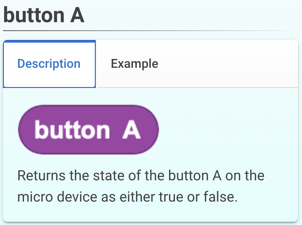 Für Grundlagenblöcke ohne eigene Definition kann über das Kontextmenü die Option „zeige Hilfe“ aufgerufen werden. Dies führt zum MicroBlocks Wiki, in dem sich in der Blockreferenz Informationen und Beispiele zu den jeweiligen Blöcken finden.