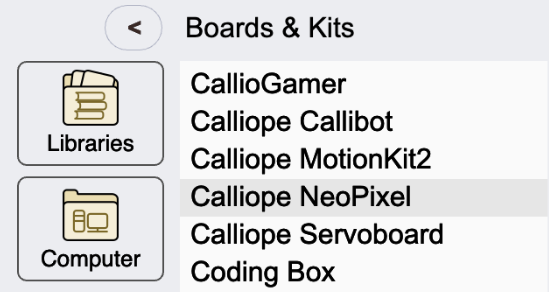 | Calliope mini Version: | V3 (BLE+USB) V1, V2 (USB) |