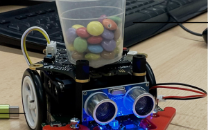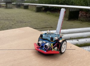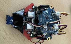 Wir haben uns für die Idee entschieden, einen kleinen Roboter zu bauen, der sich selbstständig durch den Raum bewegt, Dreck zusammenfegt und dabei Hindernissen ausweicht. Zusätzlich kann der Roboter mit einem zweiten Roboter gesteuert werden, um ihn per Knopfdruck anzuhalten oder weiterfahren zu lassen.