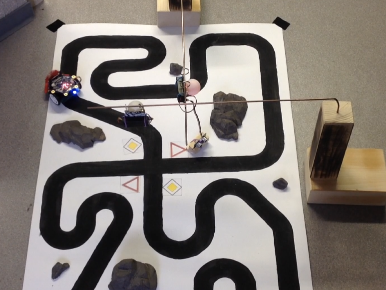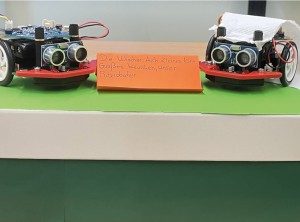 Drei Dinge, die wir gelernt haben: wie Sensoren funktionieren und wie man mit ihnen Hindernisse erkennen kann, wie man ein Programm schreibt, sodass der Roboter flexibel auf verschiedene Situationen reagiert und wie man zwei Roboter miteinander „kommunizieren“ lässt.