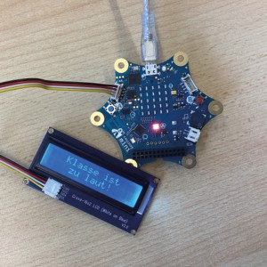 Unsere Idee „LehrerInnen-Lärm-Alarmierer" soll genau dieses Problem beheben. Sobald eine Klasse ohne LehrerIn zu laut ist, erfasst ein Calliope mini die zu hohe Lautstärke. Nun wird ein Signal zu einem weiteren Calliope mini gesendet, der sich in einem anderen Klassenraum mit LehrerIn befindet. So weiß der Lehrer immer über die Lautstärke der anderen Klasse Bescheid und kann dementsprechend handeln.