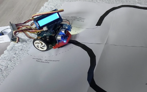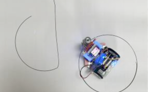 Der Calliope Mini ermöglicht präzises Anzeichnen von geraden Linien und perfekten Kreisen auf Holz oder Metall. Mit der Taste A fährt der Calliope Mini geradeaus, A+B für Kreisbewegung und B wird er zum stoppen gebracht.