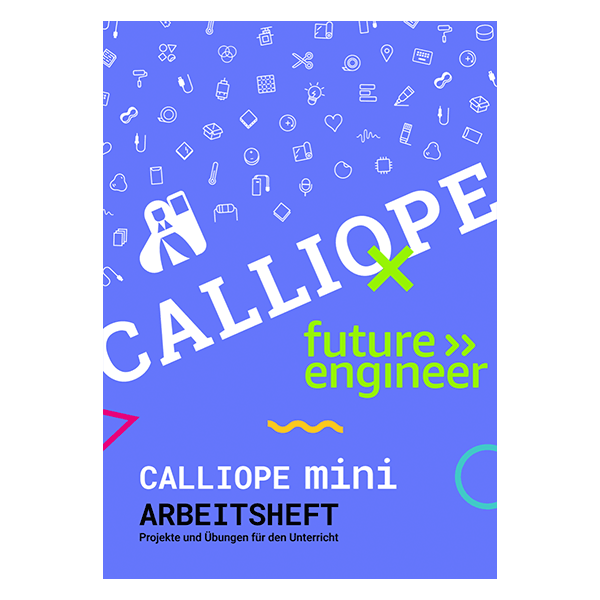 Im Rahmen des Calliope x Future Engineer Programms haben wir ein Arbeitsheft für den Einstieg in das Programmieren mit dem Calliope mini erstellt. Das Arbeitsheft bietet eine allgemeine Einführung, Aufgaben zum Kennenlernen und Steuern der einzelnen Komponenten. Zahlreiche Übungen und Projekte ermöglichen einen Schritt-für-Schritt Einstieg in das Arbeiten sowohl mit den integrierten Sensoren als auch mit externen Erweiterungen.