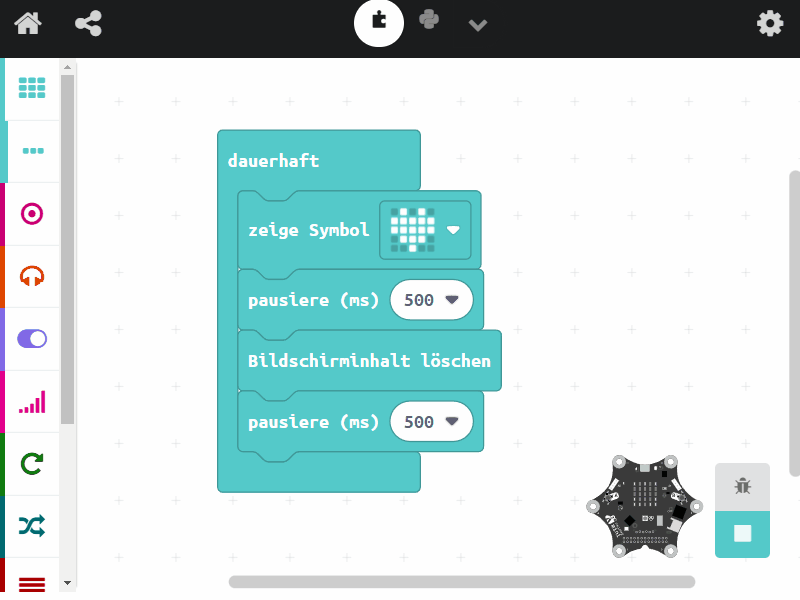 Die Ausgaben, Eingaben und Sensoren vom Calliope mini steuern und erste Sequenzen, Schleifen und Bedingungen erstellen.