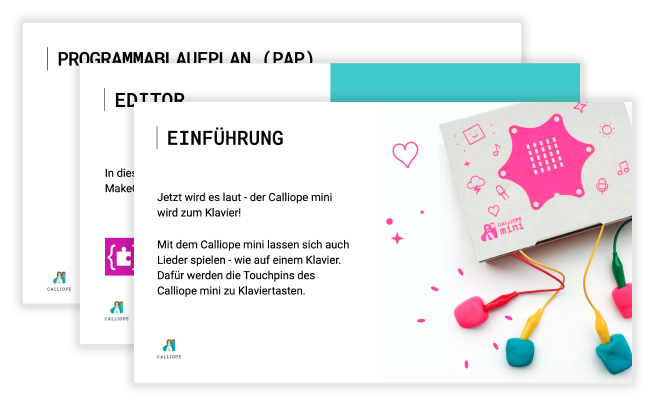 Für das Unterrichten mit dem Calliope mini in der Grundschule bieten wir ausgewähltes, projektorientiertes Unterrichtsmaterial an. Die angeleiteten Unterrichtseinheiten beinhalten herunterladbare, bearbeitbare Ressourcen, die einen lebensnahen und altersgerechten Einstieg in die Programmierung abdecken.