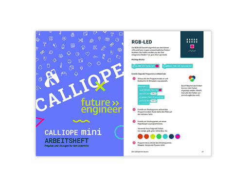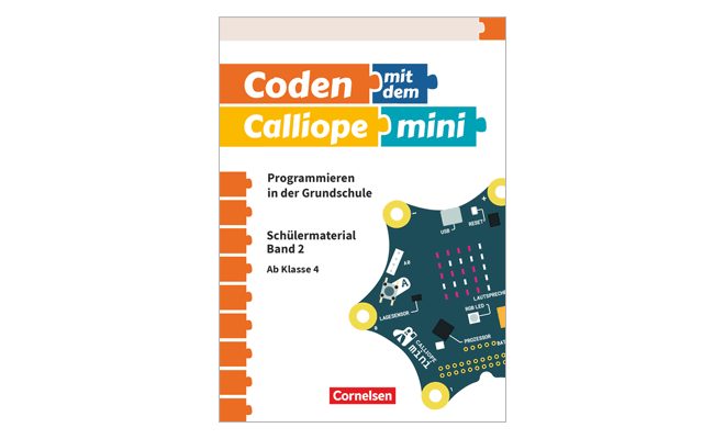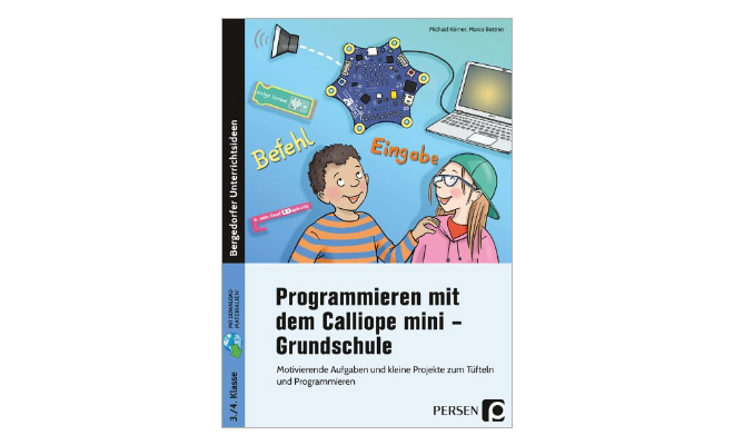 Das vom Persen Verlag veröffentlichte Arbeitsheft für Lehrer:innen und Schüler:innen zum Unterrichten mit dem Calliope mini in der Grundschule bietet einen Einstig ab der 3. Klasse.