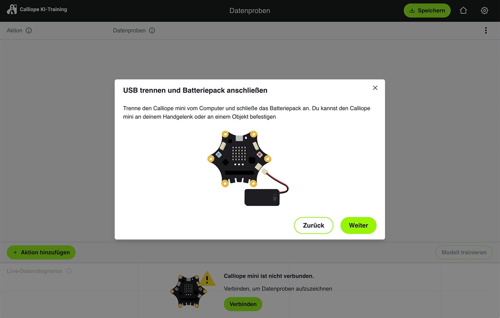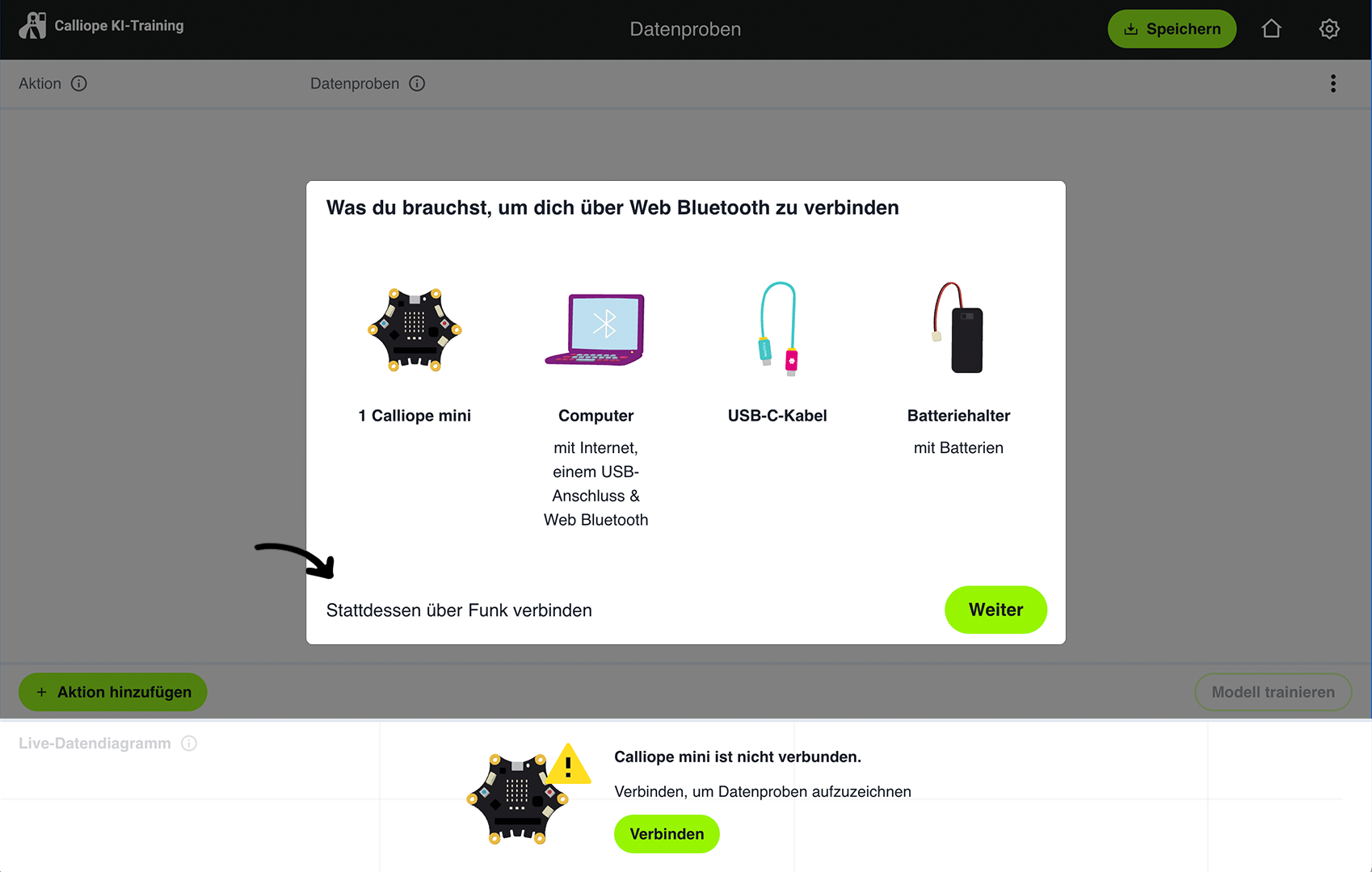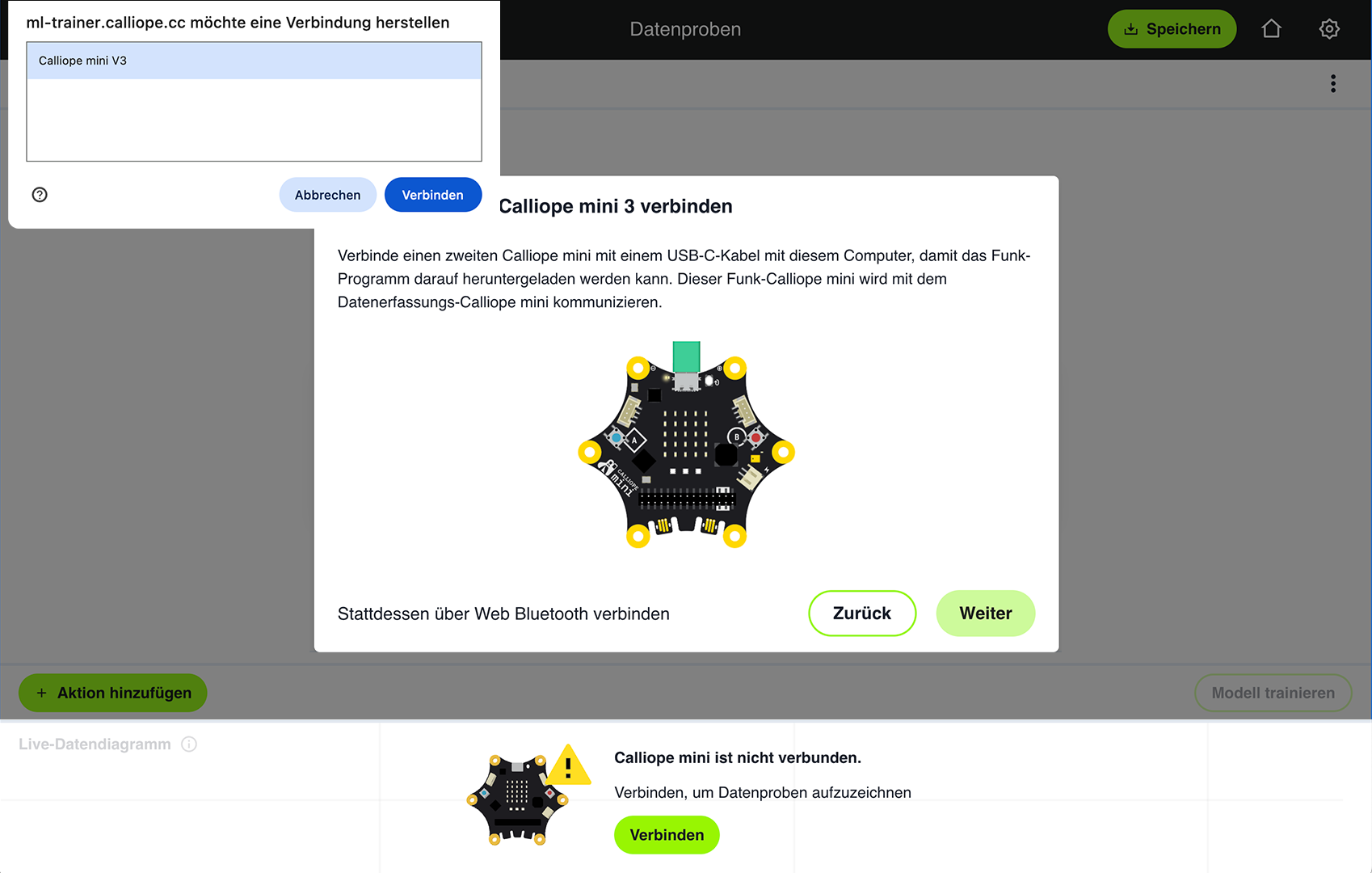 ⚠️ KI-Training benötigt in beiden Fällen einen Web-USB-unterstützenden Browser, z. B. Chrome oder Edge.