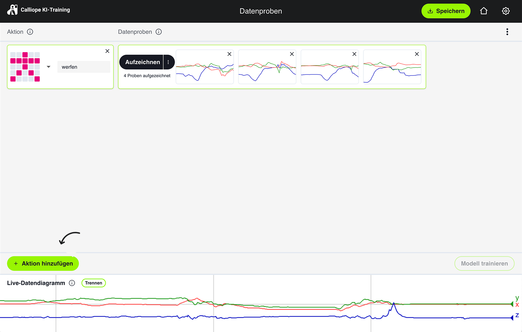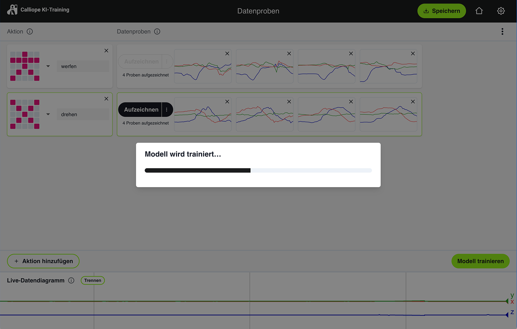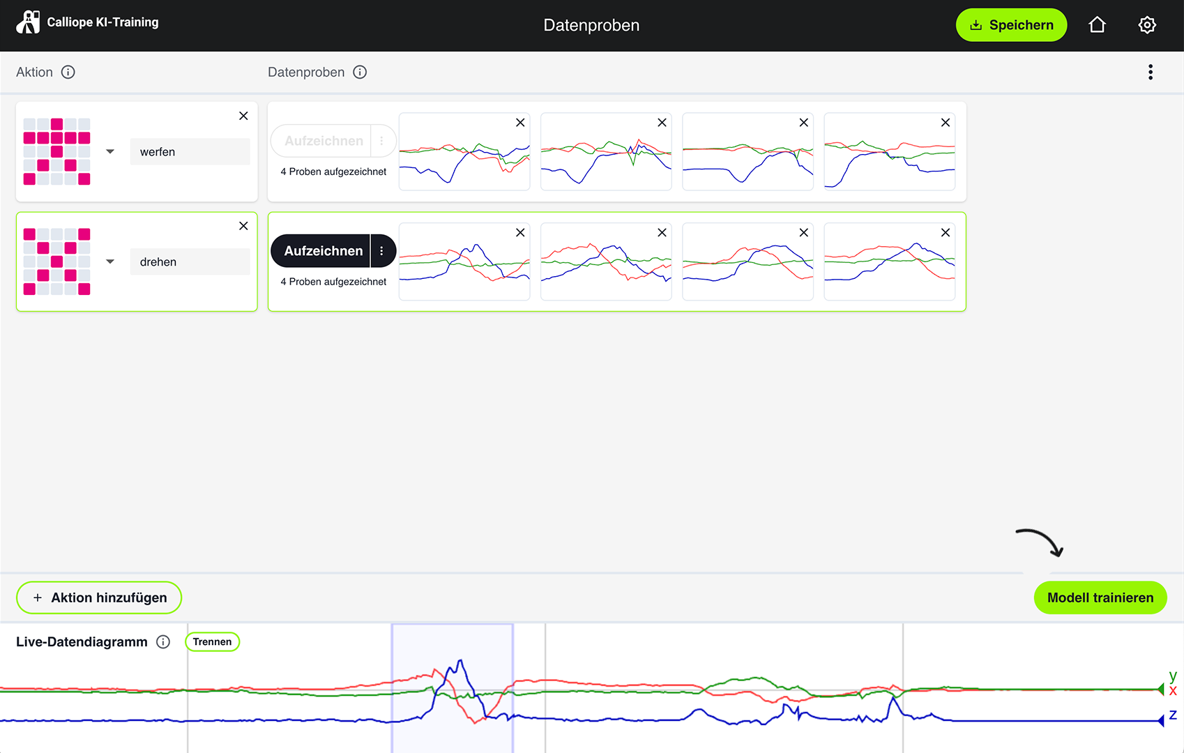 Auf Basis der gesammelten Daten wird ein Modell für Maschinelles Lernen erstellt, das die Bewegungsmuster unterscheiden kann.