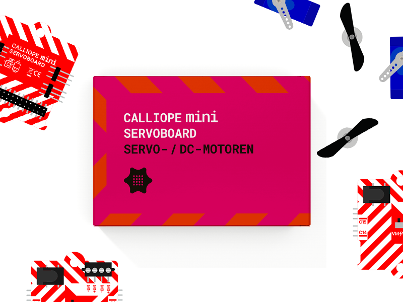Für die Umsetzung der Projekte mit dem Calliope mini 3 empfehlen wir das Calliope mini Servoboard sowie für Schulen den Klassensatz Makerspace.