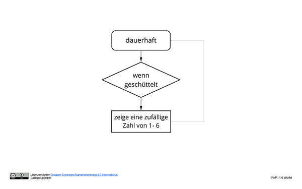 Programmiere einen Würfel, der eine zufällige Zahl wiedergibt.